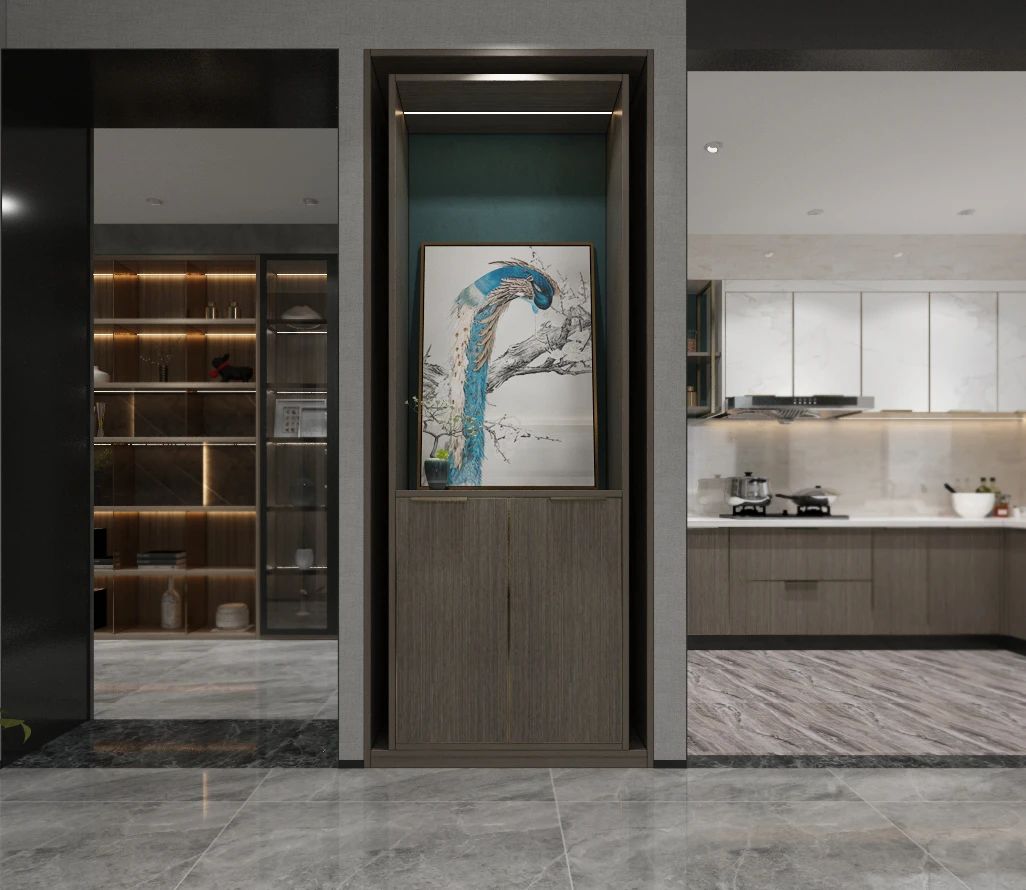 业主在烹饪美食时,自然不会为糟糕的陈设所困恼,新中式的厨房陈设,将东方特有的内敛雅致隐匿在细节中。