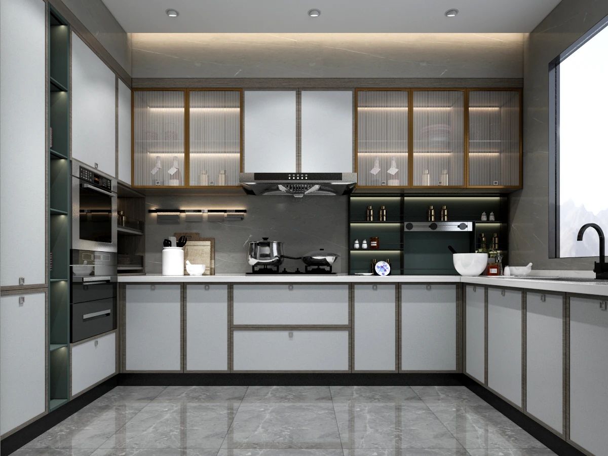 L型的厨房设计,动线明确。洗-切-炒每个环节都有自己的足够的空间。