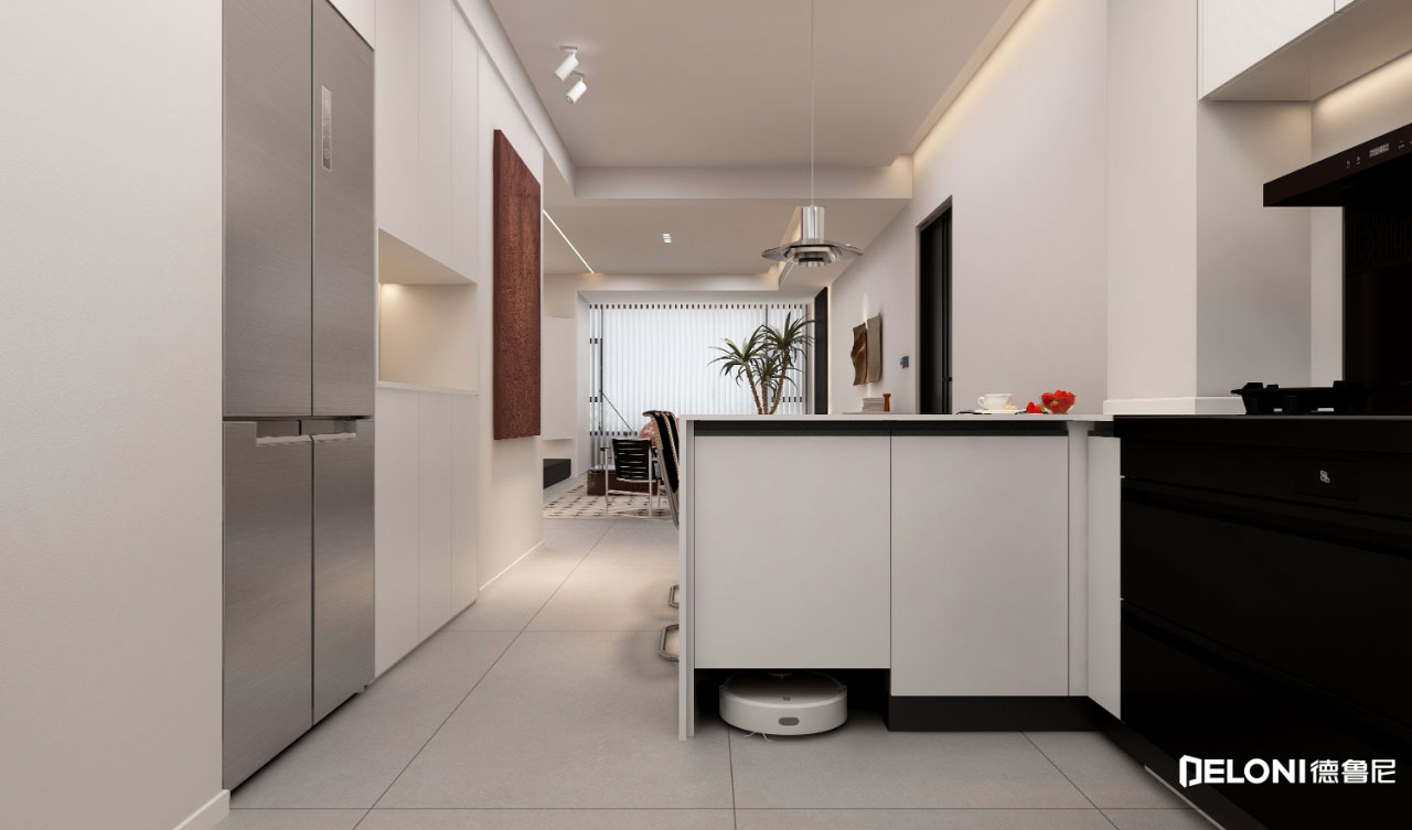 厨房动线流畅,设计师根据居者的生活习惯将加入可用作餐桌的岛台,温馨氛围浑然天成。
